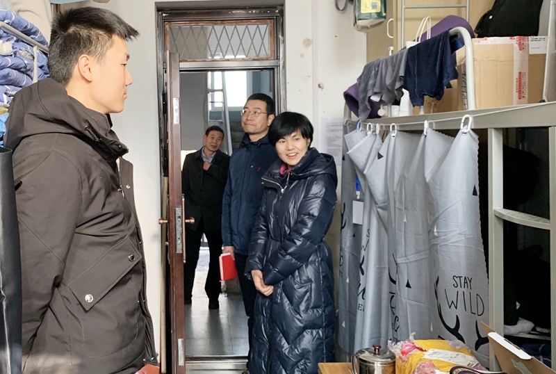 12月15日上午,校党委委员、纪委书记谭红玲带领学工处处长郭士焱、副处长仝金鹏、纪委执纪审查室主任宋庄云一行,深入云龙校区宿舍、实训楼、食堂等调研工作,信息管理学院班子成员陪同调研。