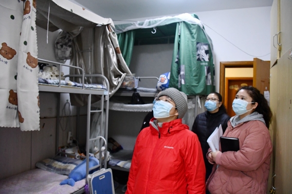 检查组一行分别走进男女生公寓,检查了学生宿舍的卫生环境,了解学生宿舍的防疫、防火及用电安全情况,并与学生进行了亲切交谈。徐锋对云龙校区宿舍文化建设、卫生状况、宿舍安全等各方面工作表示肯定,并指出,信息管理学院学生讲卫生,懂礼貌,精神面貌好,公寓楼内环境干净整洁,公寓文化和谐上进,房间内物品摆放整齐,能够反映出信息管理学院较强的管理、教育水平和践行三个“一切”的服务意识。徐锋还要求信息管理学院要在当前全国疫情防控形势严峻,疫情点多、面广、频发的大环境下,坚决筑牢疫情防线、守护师生平安,按计划做好全年各项工作。校领导一行还检查了教师办公场所的卫生及消防安全情况,并给予了积极评价。