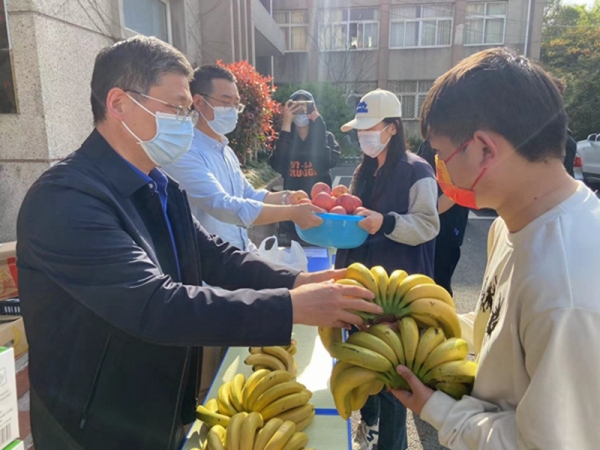 3月28日以来,新冠肺炎疫情的突袭,给徐州的疫情防控带来了严峻的考验。疫情无情,徐生有爱,学校始终心系每一位学生的身体和饮食健康,4月8日,学校调拨采购了一批水果,下午四点,近七百斤苹果和香蕉顺利发放到了信息管理学院每一位同学的手中,让大家再次感受到了来自学校的温暖和关爱。