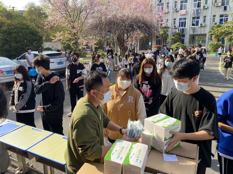 分发水果的过程中,老师们还为每一名学生分发了10枚口罩并询问大家的饮食和学习生活等情况,叮嘱大家严格遵守防疫期间的管理规定,加强个人防护,保持良好作息和生活规律,做到防疫学习两不误。学院领导和老师们的关心爱护,为信管学子带来了亲切关怀,学生们直呼温暖感动,纷纷在朋友圈、班级群表达了内心的感谢。