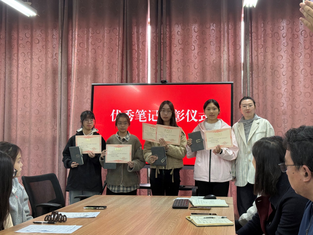 座谈会结束后,马文瑾为校“优秀笔记”评选获奖学生颁发荣誉证书,对他们在学习中展现出的认真态度、扎实功底和创新思维给予高度肯定,并寄语全体学生以获奖同学为榜样,树立优良学风,在专业学习中勤钻研、敢探索、善积累,不断提升自身专业素养和实践能力。