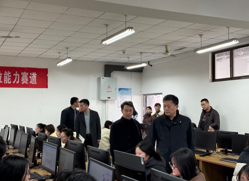 大赛得到学校各级领导的高度重视。决赛当天,校长张军、副校长赵虎、强承魁等亲临赛场,详细了解赛事组织情况,观摩学生实操表现,并就赛教融合、人才培养与产业对接等方面给予指导。
