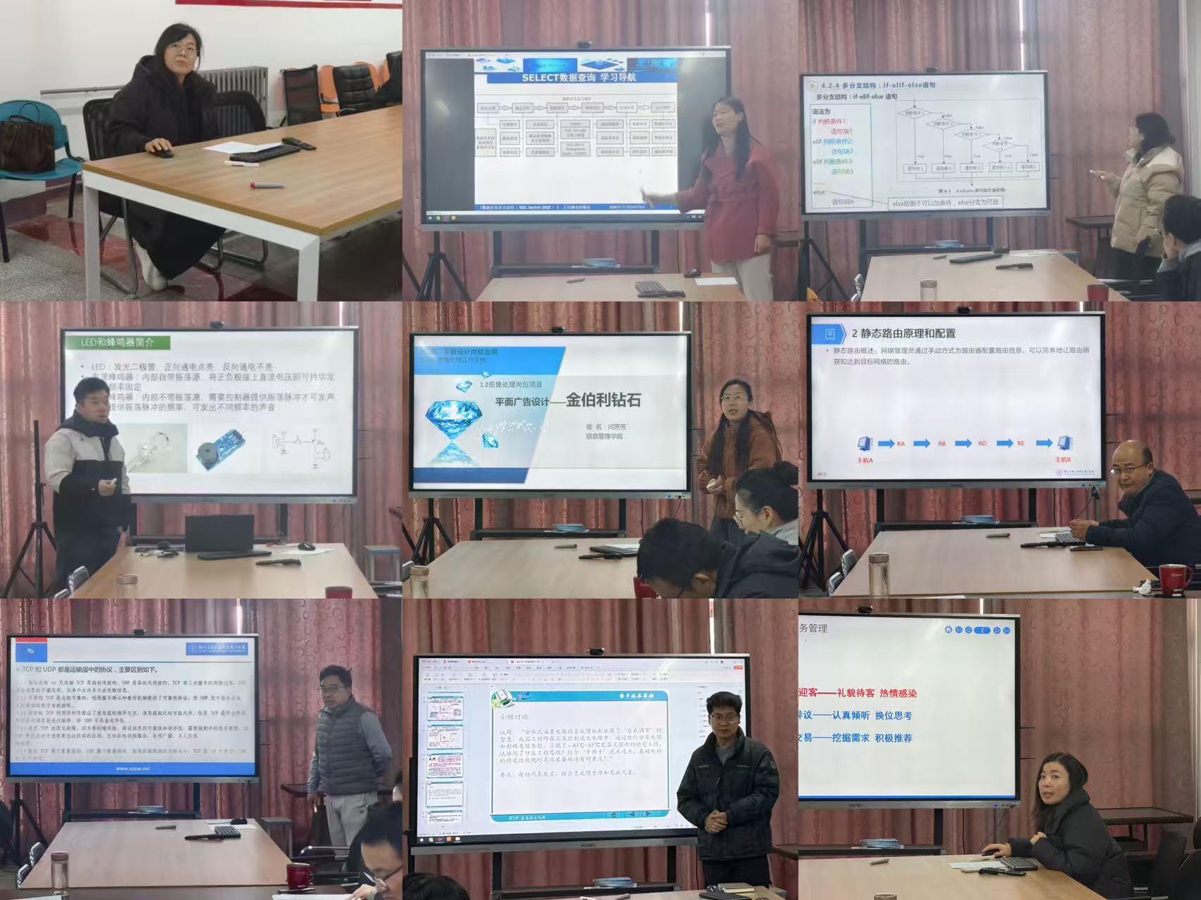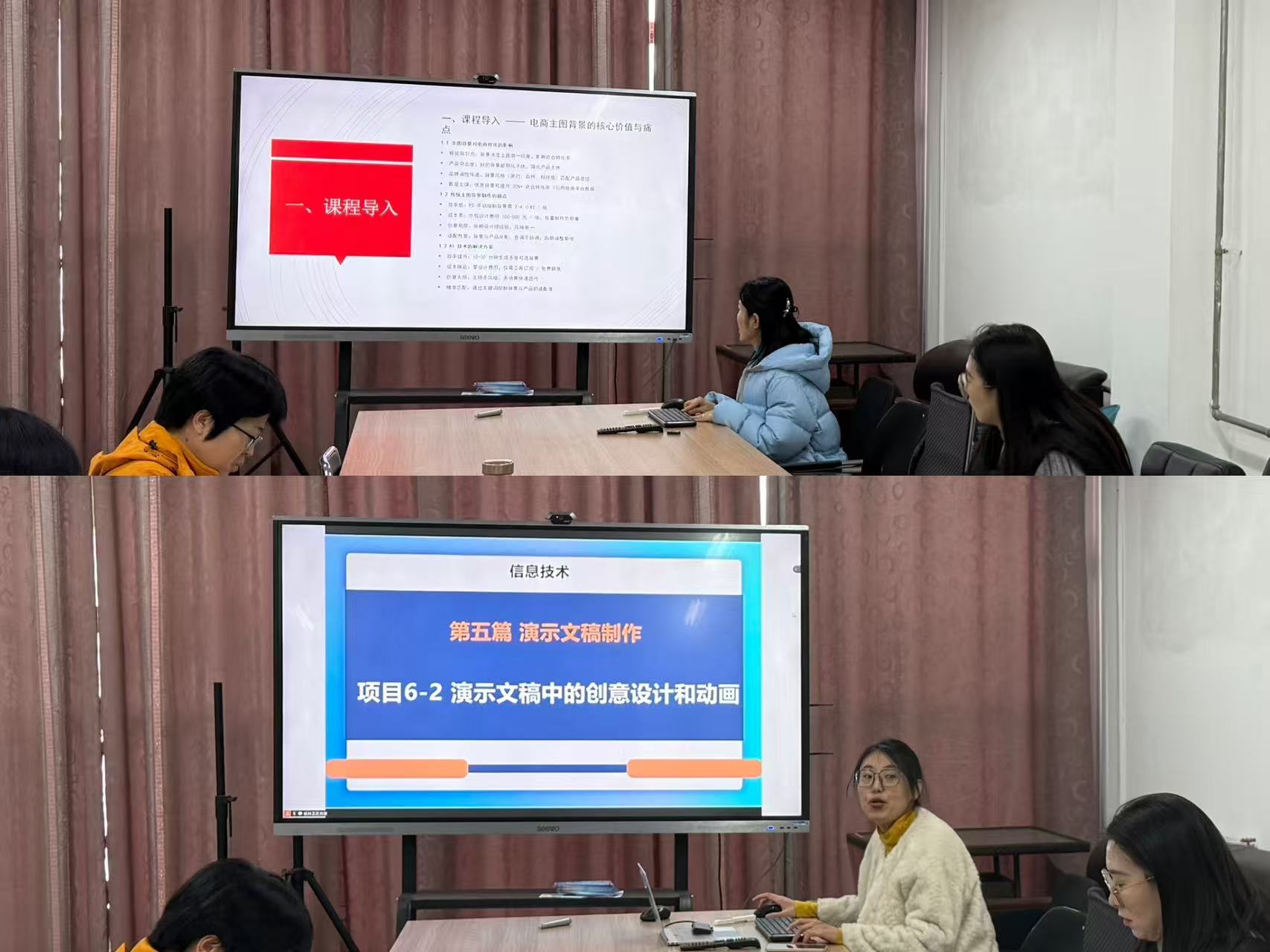 本次考核聚焦电子教案编制、课件制作、课堂教学实施三大核心模块,紧扣各专业人才培养目标,重点检验教学设计的专业适配性与教学实效。考核中,各专业教师立足领域特色精准展示。大数据与会计专业教师将行业新政与实操案例融入教案,课件凸显数据可视化教学优势;电子商务专业教师围绕AI图形处理等前沿领域,把运营技巧、客户管理等实操内容融入教学设计,课件兼具实用性与创新性;计算机及物联网专业教师聚焦编程开发等核心能力,优化教案中实践教学梯度,以逻辑化课件清晰呈现技术原理与实操步骤。